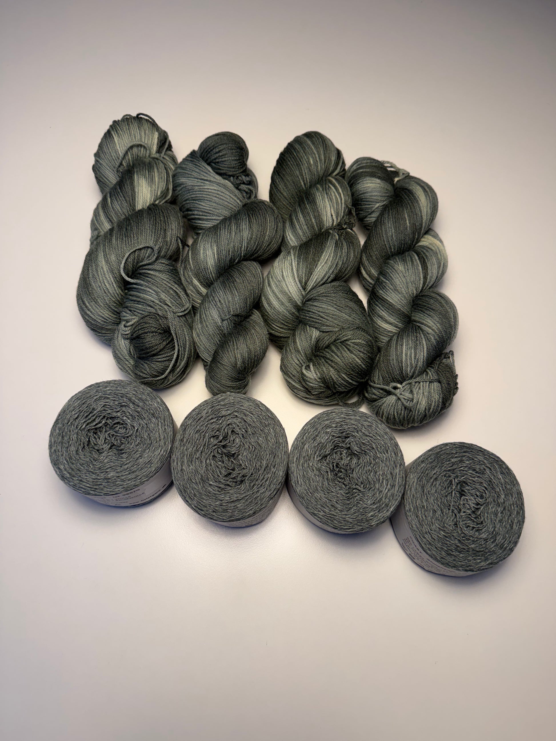 Kittet består af et eksklusivt håndfarvet garn, farvet i små batches, af den dygtige @tanjamissbear (Strikkedamen). Garnet har et levende og harmonisk farvespil, der er helt utrolig smukt og giver hvert kit sit helt eget, unikke og eksklusive udtryk.