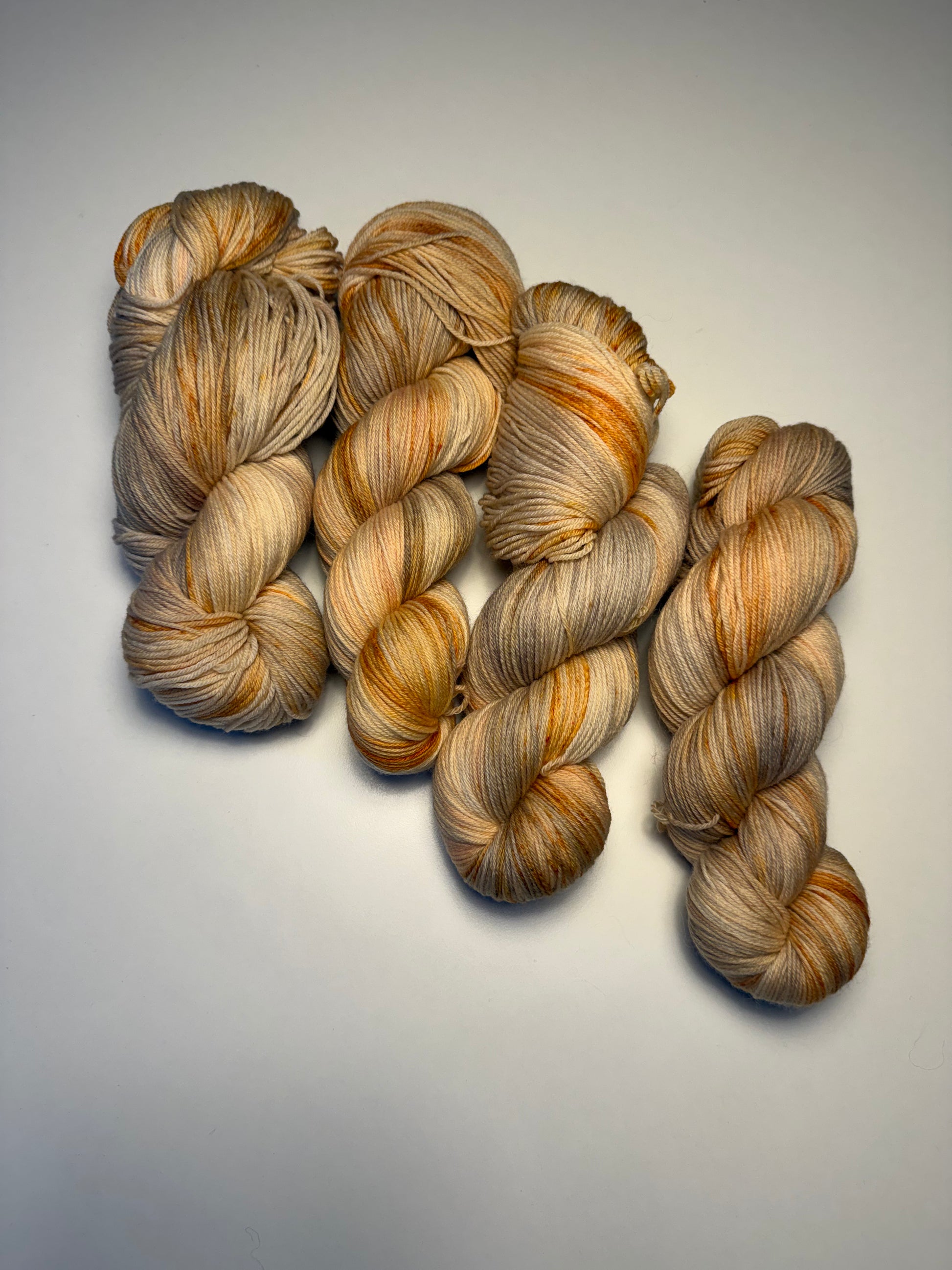 Eksklusivt håndfarvet garn fra @tanjamissbear (Strikkedamen), farvet i små batches. Garnet har et levende og harmonisk farvespil, som gør hvert kit unikt.